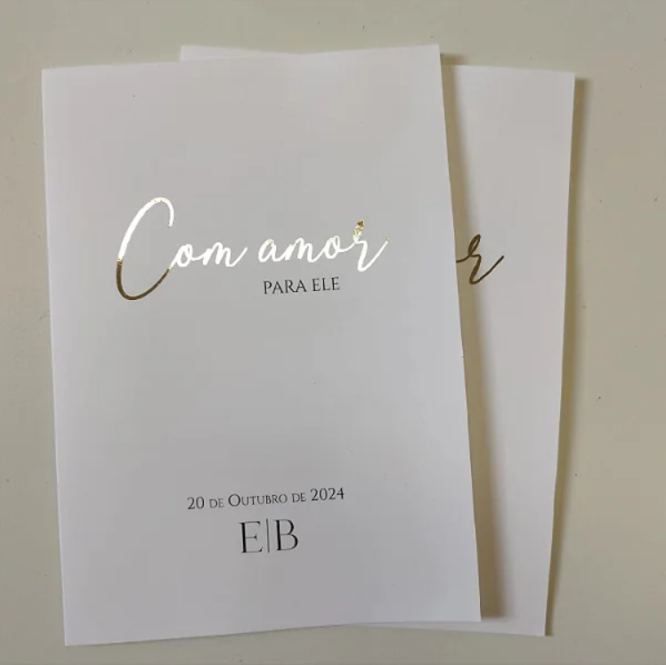 Tamanho aprox. 21 x 15 cm (fechado) - Com um vinco. Trabalhamos com vincadeira profissional, possibilitando um acabamento perfeito.