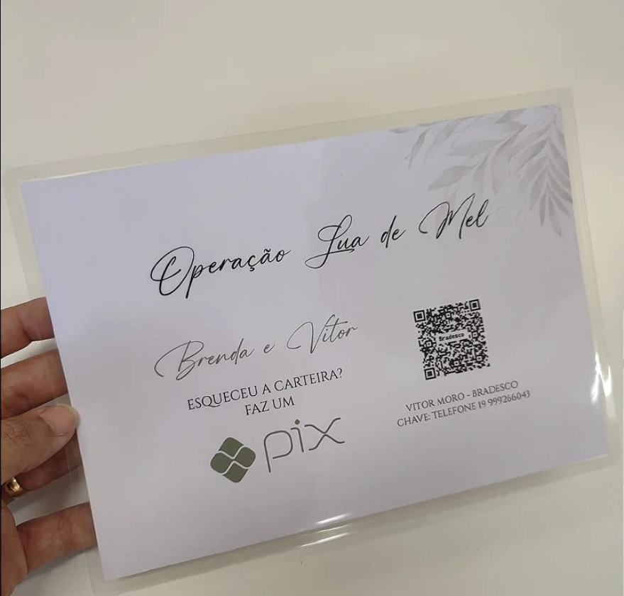 Placa PIX PLASTIFICADA personalizada pra casamento